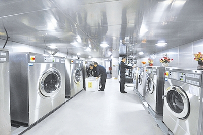 負責全體艦員衣物的洗滌、烘干、熨燙,所有送洗衣物上都統一掛上姓名標簽,艦員只需將待洗衣物裝進(jìn)洗衣袋內,送至洗衣房,過(guò)半天時(shí)間自取即可。