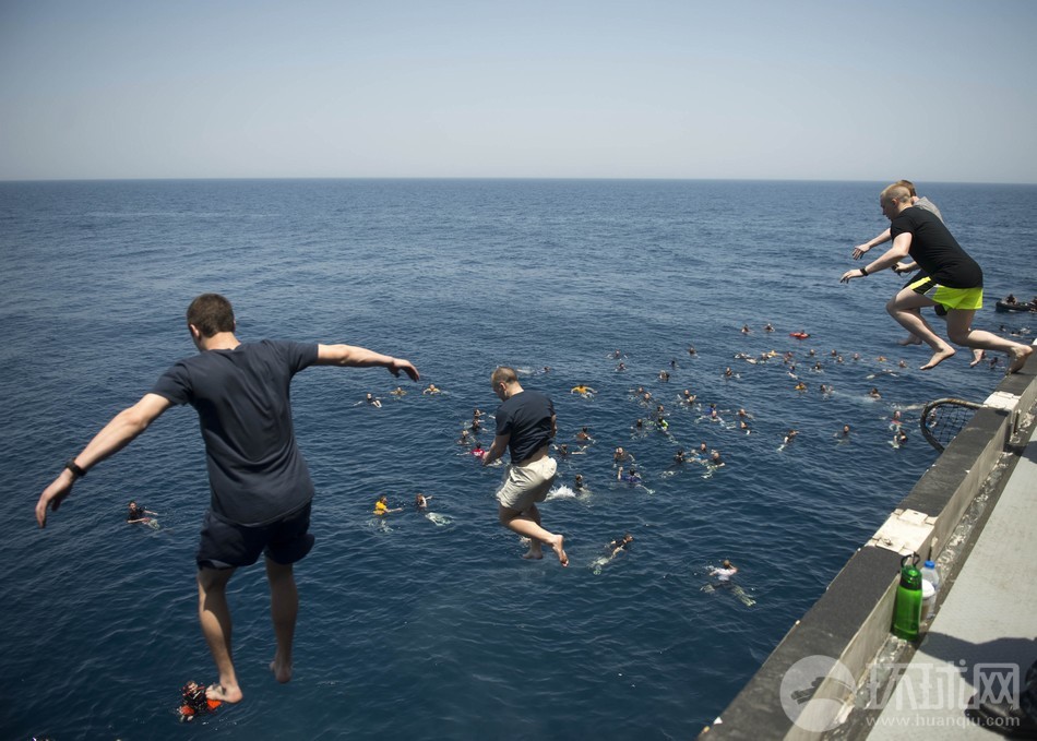 據美國海軍網(wǎng)報道,當地時(shí)間5月12日,正在阿拉伯海北部執行部署任務(wù)的美國海軍尼米茲級航空母艦艾森豪威爾號(CVN 69)組織艦員進(jìn)行跳水游泳訓練。這不僅僅是一項休閑娛樂(lè )活動(dòng),也是訓練艦員在緊急情況下的跳水逃生能力。