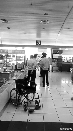 昨天,“@老佛爺的貓”在微博上“爆料”:南京到桂林旅游的殘疾人車(chē)友團體今天在兩江機場(chǎng)過(guò)了安檢后卻被拒絕登機,從早上8點(diǎn)等到下午3點(diǎn)。機場(chǎng)解釋因安全緣故殘疾人恐怕難以逃生,安排了其他乘客從另一通道登機。28名殘疾乘客逗留,有位阿姨聲稱(chēng)被保安打傷,后由一位李經(jīng)理賠償道歉。經(jīng)過(guò)交涉,目前他們已經(jīng)登機。