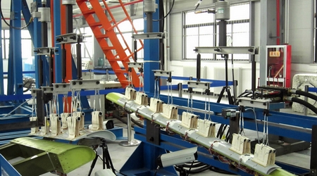 在近兩年的試驗過(guò)程中,子翼試驗共進(jìn)行了4次限制載荷靜力試驗、1次極限載荷靜力試驗和累計124000次飛行起落的疲勞試驗,分三個(gè)階段對其進(jìn)行10個(gè)點(diǎn)的損傷引入,最終取得試驗的成功。