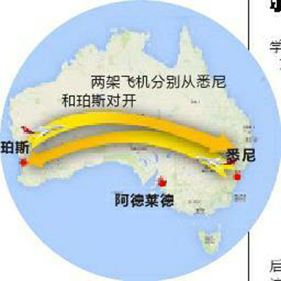 20日12時(shí),兩架分別從澳大利亞悉尼和珀斯市對開(kāi)的A330空客正好經(jīng)過(guò)阿德萊德以西19公里的上空。