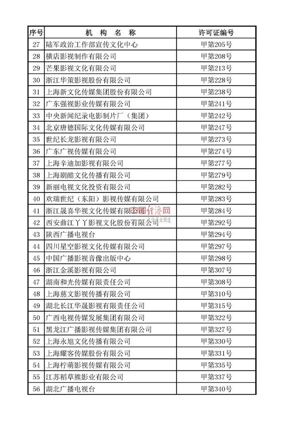 值得一提的是,由于國務(wù)院機構改革,在此次換證工作中,《電視劇制作許可證(甲種)》發(fā)證機關(guān)統一變更為國家廣播電視總局,許可證有效期由往年的1年統一調整為3年。
