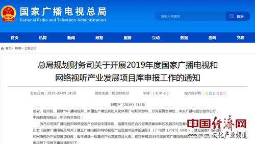經(jīng)濟日報-中國經(jīng)濟網(wǎng)北京9月10日訊 日前,國家廣播電視總局發(fā)布了關(guān)于開(kāi)展2019年度國家廣播電視和網(wǎng)絡(luò )視聽(tīng)產(chǎn)業(yè)發(fā)展項目庫申報工作的通知。通知表明,為充分發(fā)揮廣播電視和網(wǎng)絡(luò )視聽(tīng)產(chǎn)業(yè)項目支撐作用,培育扶持符合行業(yè)高質(zhì)量創(chuàng )新性發(fā)展方向的重點(diǎn)產(chǎn)業(yè)發(fā)展項目,國家廣播電視總局印發(fā)《國家廣播電視總局關(guān)于建立廣播電視和網(wǎng)絡(luò )視聽(tīng)產(chǎn)業(yè)發(fā)展項目庫的通知》(廣電發(fā)〔2019〕60號),建立國家廣播電視和網(wǎng)絡(luò )視聽(tīng)產(chǎn)業(yè)發(fā)展項目庫,每年遴選一批重點(diǎn)產(chǎn)業(yè)發(fā)展項目入庫。