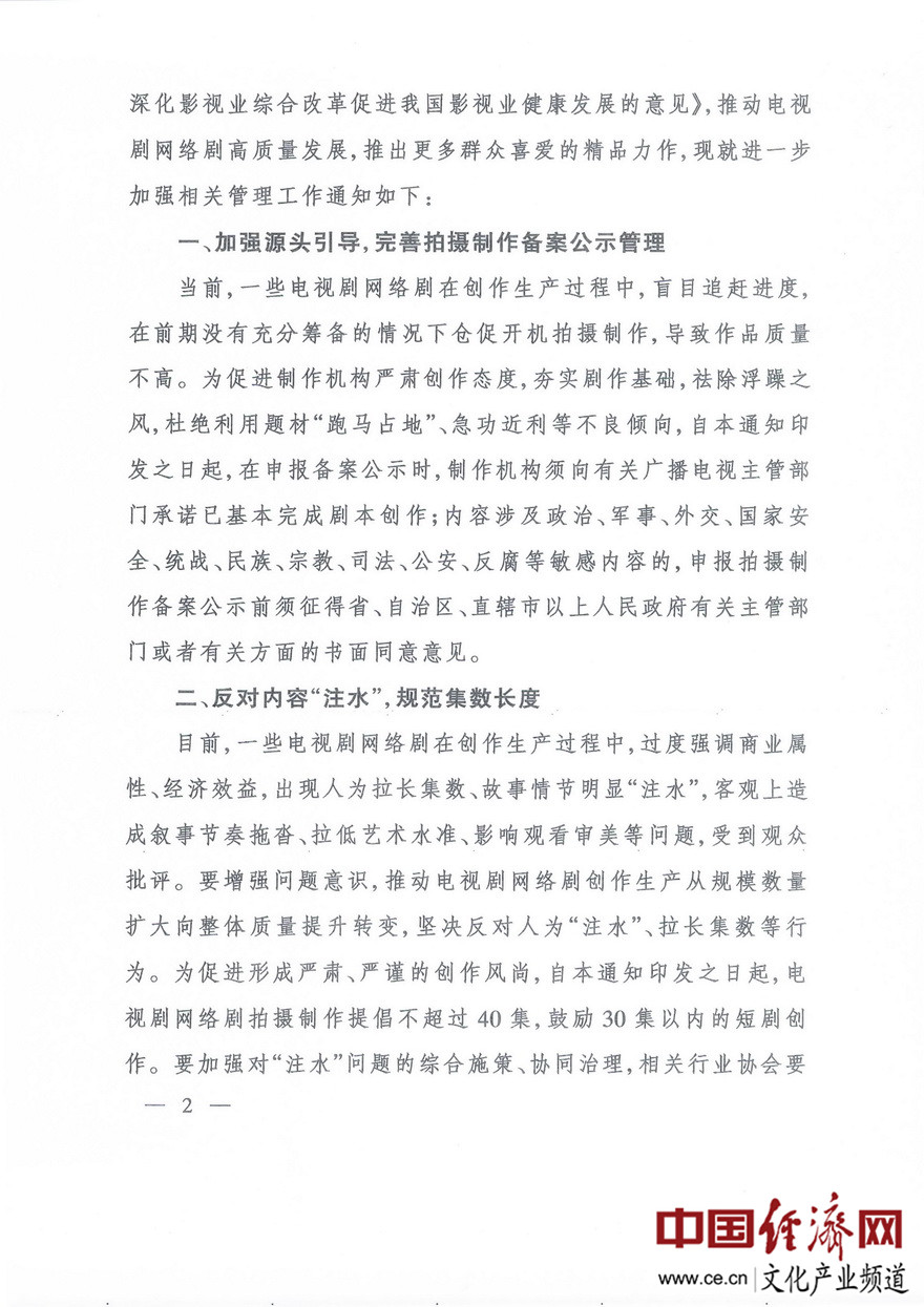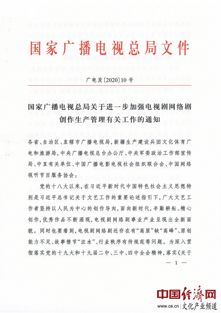 經(jīng)濟日報-中國經(jīng)濟網(wǎng)北京2月20日訊 近日,國家廣播電視總局下發(fā)了《進(jìn)一步加強電視劇網(wǎng)絡(luò )劇創(chuàng )作生產(chǎn)管理有關(guān)工作的通知》(廣電發(fā)﹝2020﹞10號)。據經(jīng)濟日報-中國經(jīng)濟網(wǎng)文化產(chǎn)業(yè)頻道(微信號:cewenhua)了解,該《通知》要求:一是加強源頭引導,在申報備案公示時(shí),制作機構須向省局承諾已基本完成劇本創(chuàng )作;二是反對內容“注水”,電視劇網(wǎng)絡(luò )劇拍攝制作提倡不超過(guò)40集,鼓勵30集以?xún)榷虅?chuàng )作;三是做好制作成本配置比例情況報備工作。在電視劇網(wǎng)絡(luò )劇完成片審查階段,制作機構須將制作成本決算配置比例情況報告、演員片酬合同復印件,提交至省局備案。每部電視劇網(wǎng)絡(luò )劇全部演員總片酬不得超過(guò)制作總成本的40%,其中主要演員片酬不得超過(guò)總片酬的70%。>>>更多政策可查看中國經(jīng)濟網(wǎng)“中國文化產(chǎn)業(yè)政策庫”