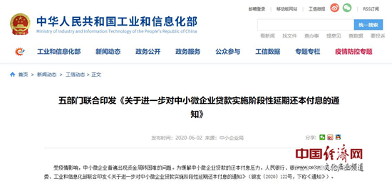 經(jīng)濟日報-中國經(jīng)濟網(wǎng)北京6月3日訊 受疫情影響,中小微企業(yè)普遍出現資金周轉困難的問(wèn)題。為進(jìn)一步強化穩企業(yè)保就業(yè)支持政策,緩解企業(yè)尤其是中小微企業(yè)年內還本付息資金壓力,日前,人民銀行、銀保監會(huì )、財政部、發(fā)展改革委、工業(yè)和信息化部聯(lián)合印發(fā)《關(guān)于進(jìn)一步對中小微企業(yè)貸款實(shí)施階段性延期還本付息的通知》(以下簡(jiǎn)稱(chēng)“通知”)。