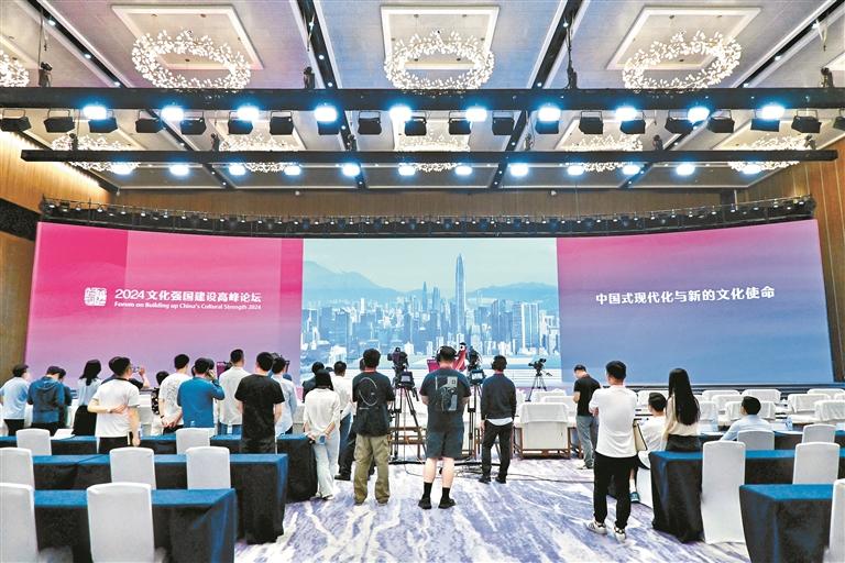 深圳國際會(huì )展中心,2024文化強國建設高峰論壇會(huì )場(chǎng)設備調試中。深圳特區報記者 耿超逸 攝