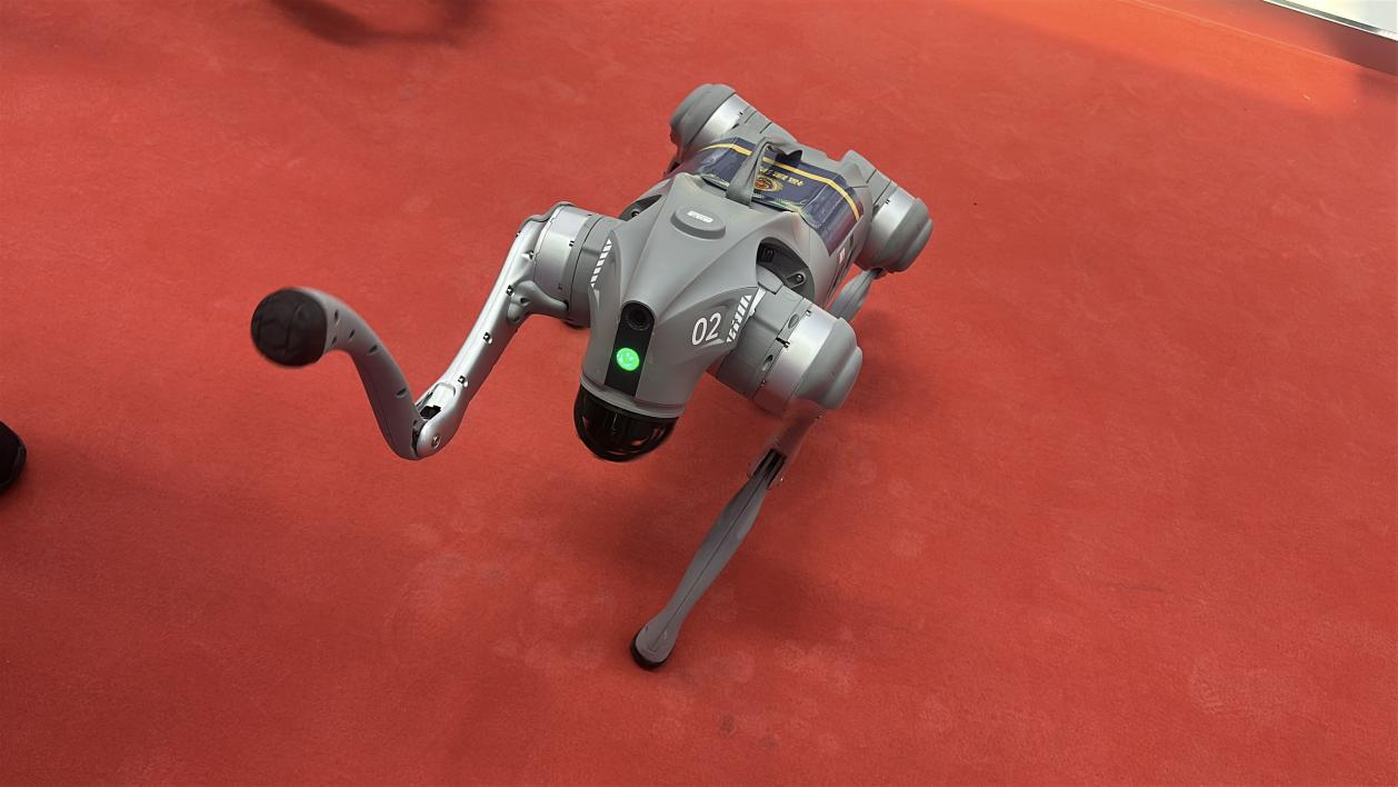 福建消防機器狗在現場(chǎng)與觀(guān)眾互動(dòng)。 中國經(jīng)濟網(wǎng)記者梁木攝