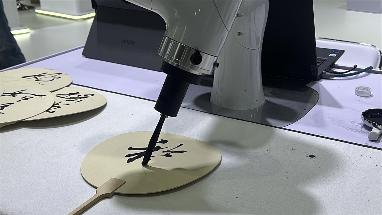 科大訊飛的機器人可以模仿書(shū)法家筆觸,在現場(chǎng)留下“墨寶”。中國經(jīng)濟網(wǎng)記者梁木攝