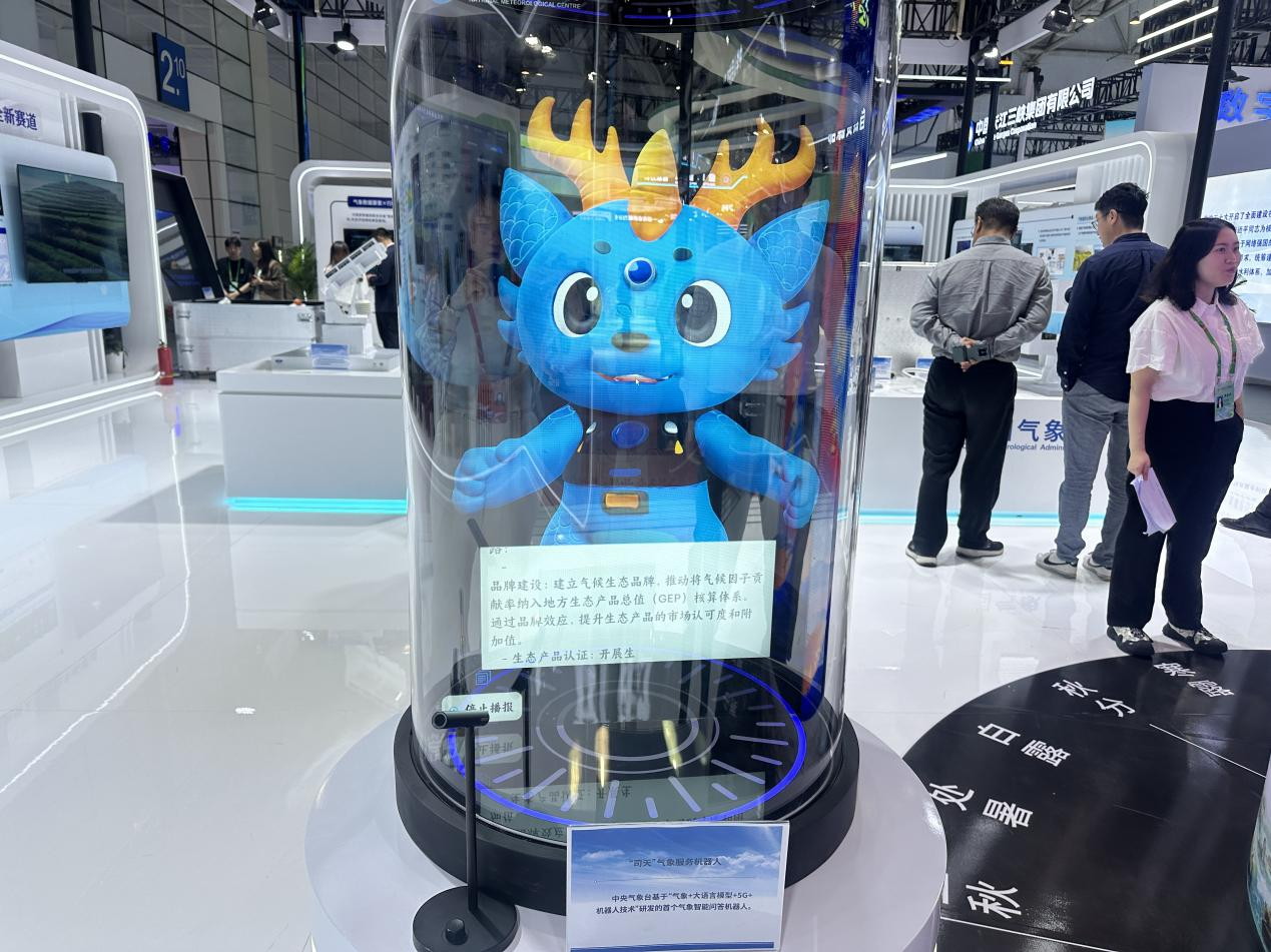 “司天”氣象服務(wù)機器人是中央氣象臺基于“氣象+大語(yǔ)言模型+5G+機器人技術(shù)”研發(fā)的首個(gè)氣象智能問(wèn)答機器人。 中國經(jīng)濟網(wǎng)記者 梁木攝