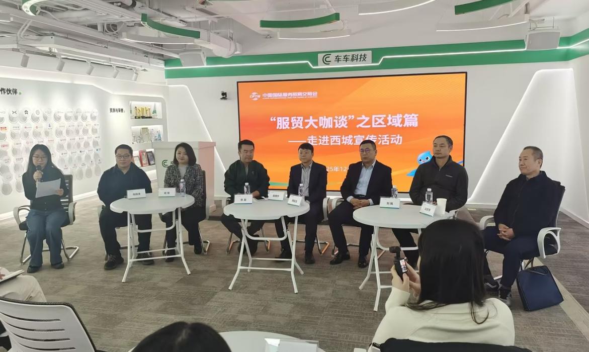 中國國際服務(wù)貿易交易會(huì )“服貿大咖談”之區域篇——走進(jìn)西城宣傳活動(dòng)12月16日在北京西城車(chē)車(chē)科技集團舉行。圖為活動(dòng)現場(chǎng)。中國經(jīng)濟網(wǎng)記者 朱曉倩/攝