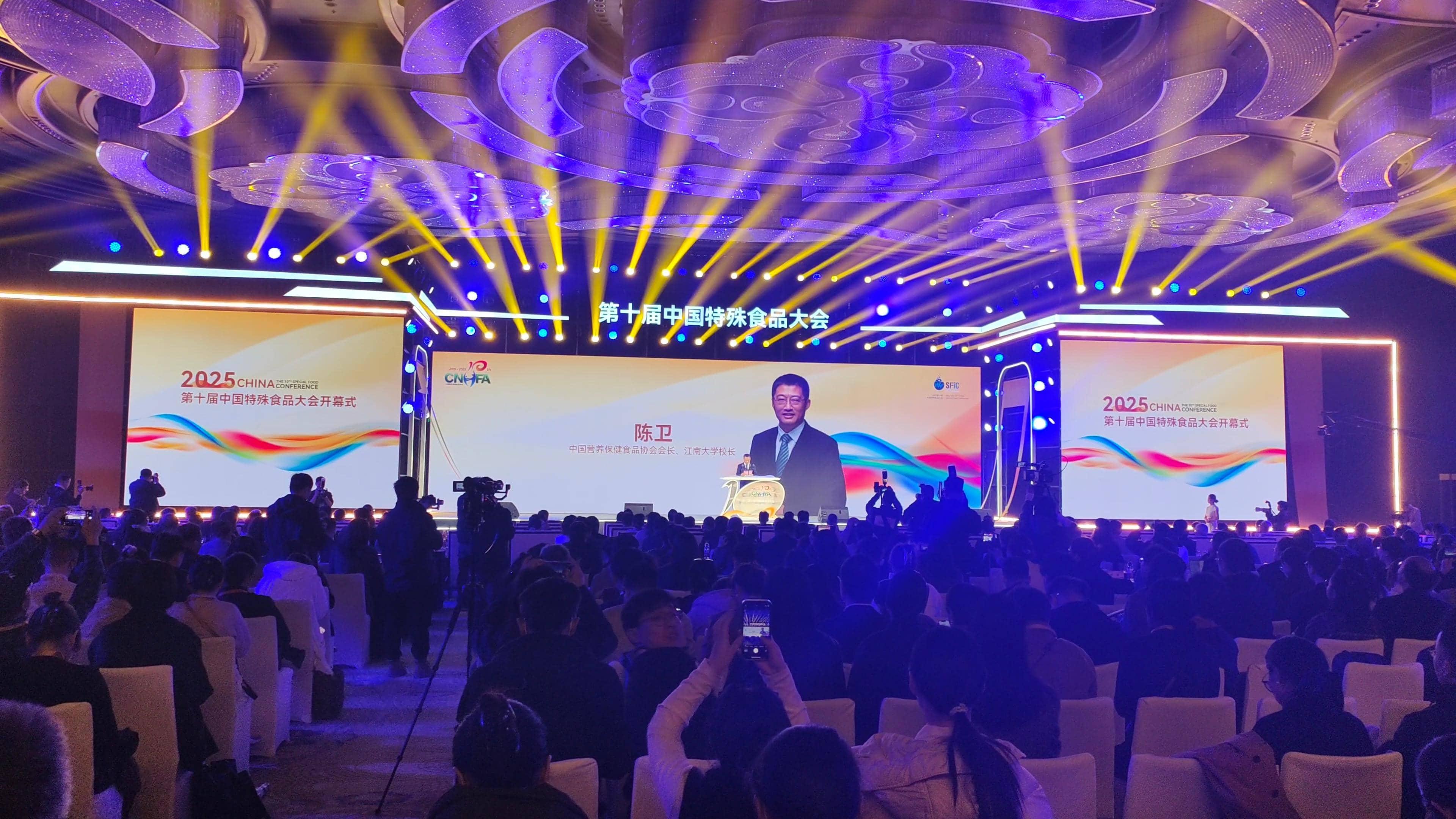 中國營(yíng)養保健食品協(xié)會(huì )會(huì )長(cháng)、江南大學(xué)校長(cháng)陳衛代表主辦單位致歡迎詞時(shí)指出,中國營(yíng)養保健食品協(xié)會(huì )始終與行業(yè)同頻共振。堅持科學(xué)為本,夯實(shí)創(chuàng )新基石;筑牢安全底線(xiàn),打造責任閉環(huán);促進(jìn)跨界融合,拓展產(chǎn)業(yè)邊界。未來(lái)將堅持以“‘拾’光織錦 不啻微芒”的精神,與業(yè)內外同仁一道共同開(kāi)啟中國特殊食品行業(yè)的新篇章。