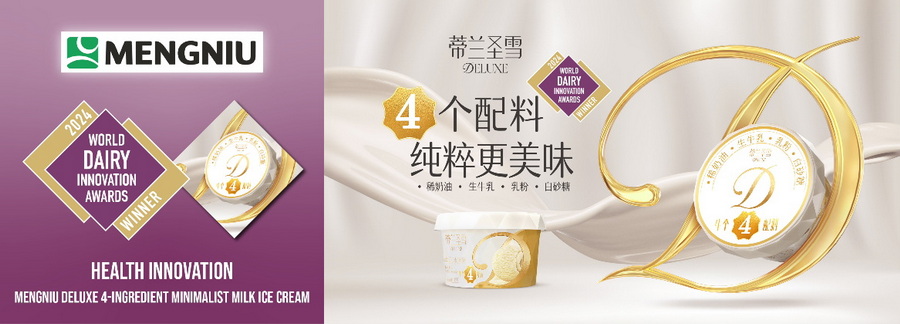 蒙牛旗下高端冰淇淋品牌帝蘭圣雪滿(mǎn)足消費者對于零食產(chǎn)品潔凈配料的健康需求,僅用4個(gè)配料造就極簡(jiǎn)牛乳冰淇淋,成為全球最短配料表的冰淇淋。輕松斬獲2024WDIA世界乳品創(chuàng )新獎——健康創(chuàng )新金獎、憑借16項專(zhuān)利技術(shù)榮獲輕工業(yè)聯(lián)合會(huì )科技進(jìn)步二等獎。綠色心情憑借產(chǎn)品創(chuàng )新碩果累累,綠色心情綠豆糕接連榮獲IFE世界食品創(chuàng )新獲獎、最佳冰品獎;CBIC飲品冷飲年會(huì )2024年值得品嘗的冷飲新品三項大獎;綠色心情綠莎莎脆筒榮獲IFE世界食品最佳零食獎。