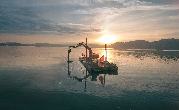 由中國安能與中船應急聯(lián)合研制的水上應急搶險綜合平臺——“打樁船” 資料圖片