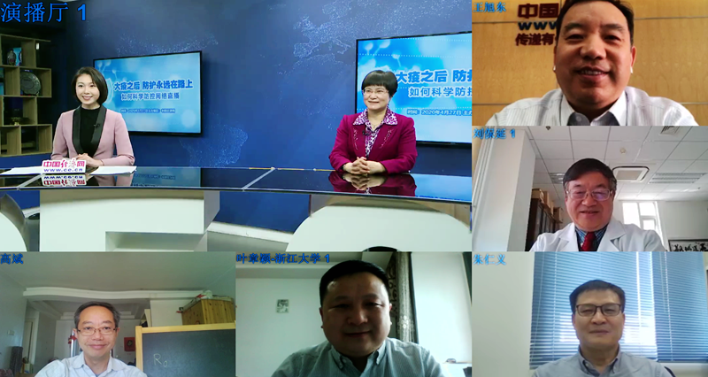 4月27日,“大疫之后 防護永遠在路上”如何科學(xué)防控網(wǎng)絡(luò )直播通過(guò)中經(jīng)云端舉辦。圖為直播現場(chǎng)。