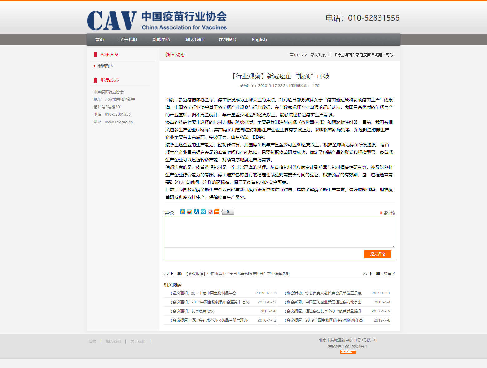 中國疫苗行業(yè)協(xié)會(huì )稱(chēng),基于疫苗瓶產(chǎn)業(yè)觀(guān)察與行業(yè)數據,在與數家標桿企業(yè)溝通論證后認為,我國具備優(yōu)質(zhì)疫苗瓶生產(chǎn)的產(chǎn)業(yè)基礎,據不完全統計,年產(chǎn)量至少可達80億支以上,能夠滿(mǎn)足新冠疫苗生產(chǎn)需求。
