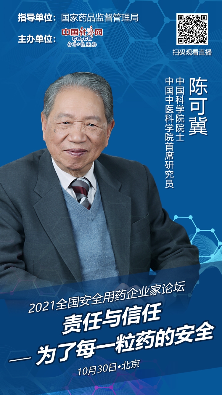 中國經(jīng)濟網(wǎng)北京10月30日訊 (記者 郭文培) “中西醫結合醫學(xué)的生命力在于提高臨床療效,安全療效尤為重要?!?0月30日,在中國經(jīng)濟網(wǎng)舉辦的2021全國安全用藥企業(yè)家論壇上,對于中西醫結合醫學(xué)的發(fā)展,中國科學(xué)院院士、中國中醫科學(xué)院首席研究員陳可冀如此表示。
