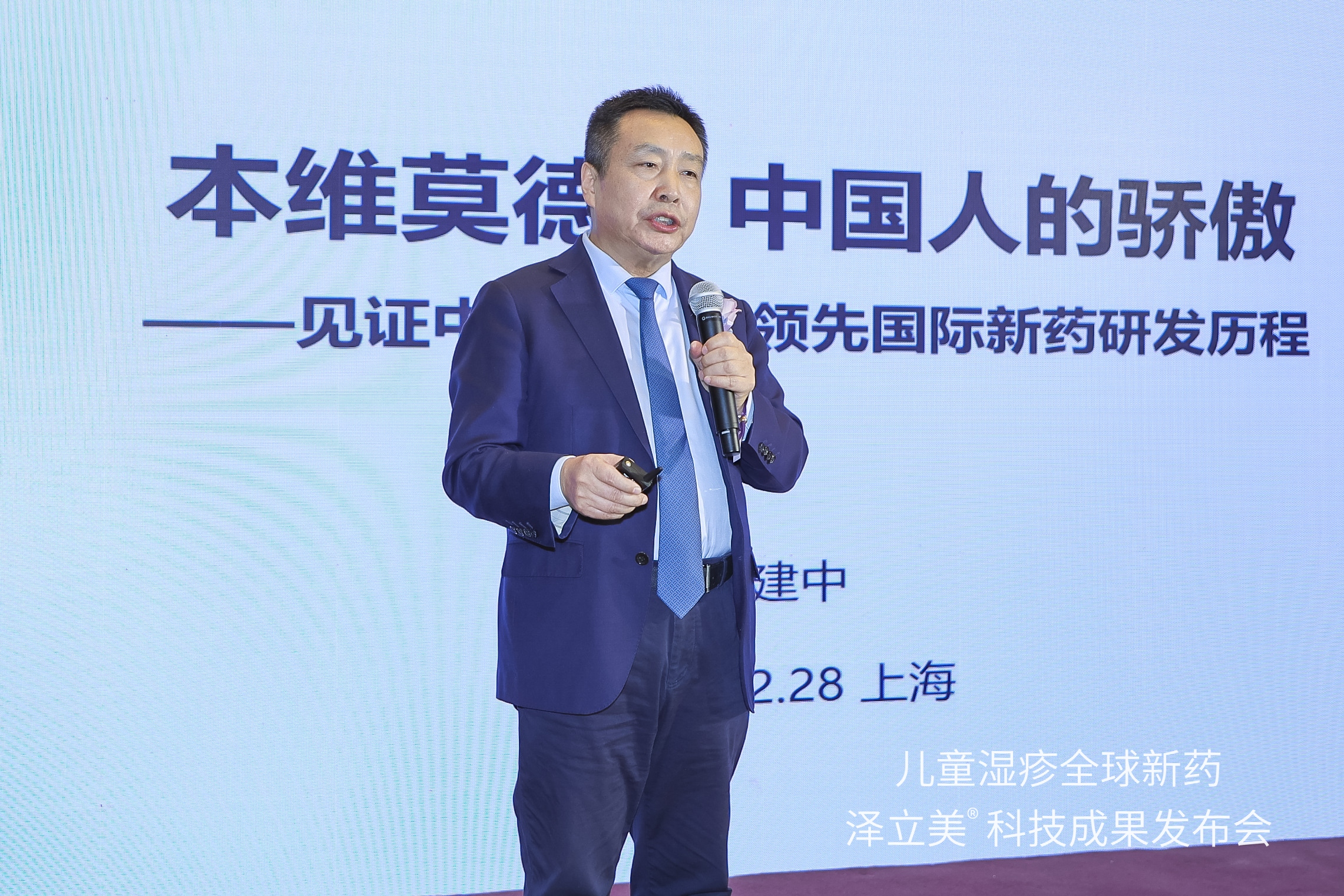 12月28日,兒童濕疹全球新藥澤立美科技成果發(fā)布會(huì )在上海舉行。圖為北京大學(xué)人民醫院皮膚科張建中教授作主題報告。