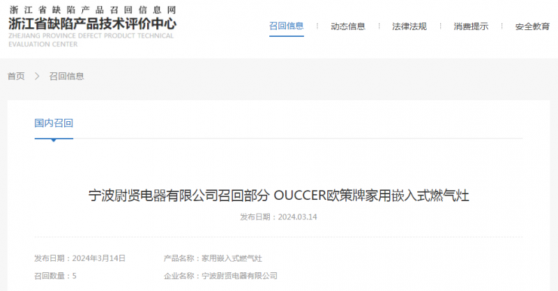 2024年03月20日 10:04   來(lái)源:浙江省缺陷產(chǎn)品召回信息網(wǎng)