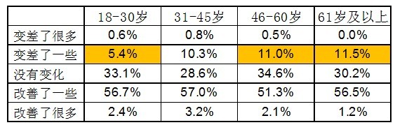 解讀一:過(guò)去一年,46-60歲的市民對食品安全狀況的改善評價(jià)較低