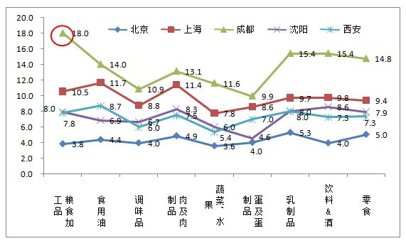解讀四:成都的食品安全信心指數增長(cháng)最快,其次是上海,最差的是北京
