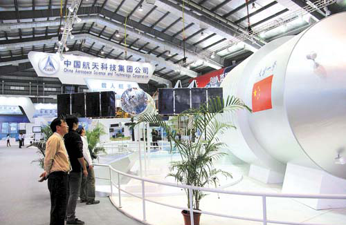 在第八屆中國國際航空航天博覽會(huì )中,中國航天科技集團公司推出代表月球探測工程最新成果的“嫦娥二號”衛星模型,代表“北斗導航”工程、直徑達7米、蔚為壯觀(guān)的天地一體衛星運行沙盤(pán),1:1的“天宮一號”目標飛行器模型、新一代運載火箭以及代表深空探測計劃的“螢火一號”衛星模型等國家重大工程項目近100項新展品首次亮相。