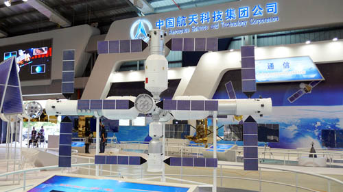 在此次航展中,中國航天科技集團公司推出代表月球探測工程最新成果的“嫦娥二號”衛星模型,代表“北斗導航”工程、直徑達7米、蔚為壯觀(guān)的天地一體衛星運行沙盤(pán),1:1的“天宮一號”目標飛行器模型、新一代運載火箭以及代表深空探測計劃的“螢火一號”衛星模型等國家重大工程項目近100項新展品首次亮相。圖為長(cháng)期有人照料的空間站模型。(宗文)