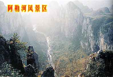 區以大山、大洞著(zhù)稱(chēng),集峽谷、溶洞、河流為一體,面積16平方公里。有2.5公里的峽谷游覽河道,望兩岸石巖上藤蘿密布,矮樹(shù)密匝,植被保護良好。阿勒河風(fēng)景旅游區的開(kāi)發(fā)已列入六盤(pán)水市委、市政府2002年十件實(shí)事之一,市縣(區)兩級政府已投入100萬(wàn)元進(jìn)行景區基礎設施開(kāi)發(fā)建設。